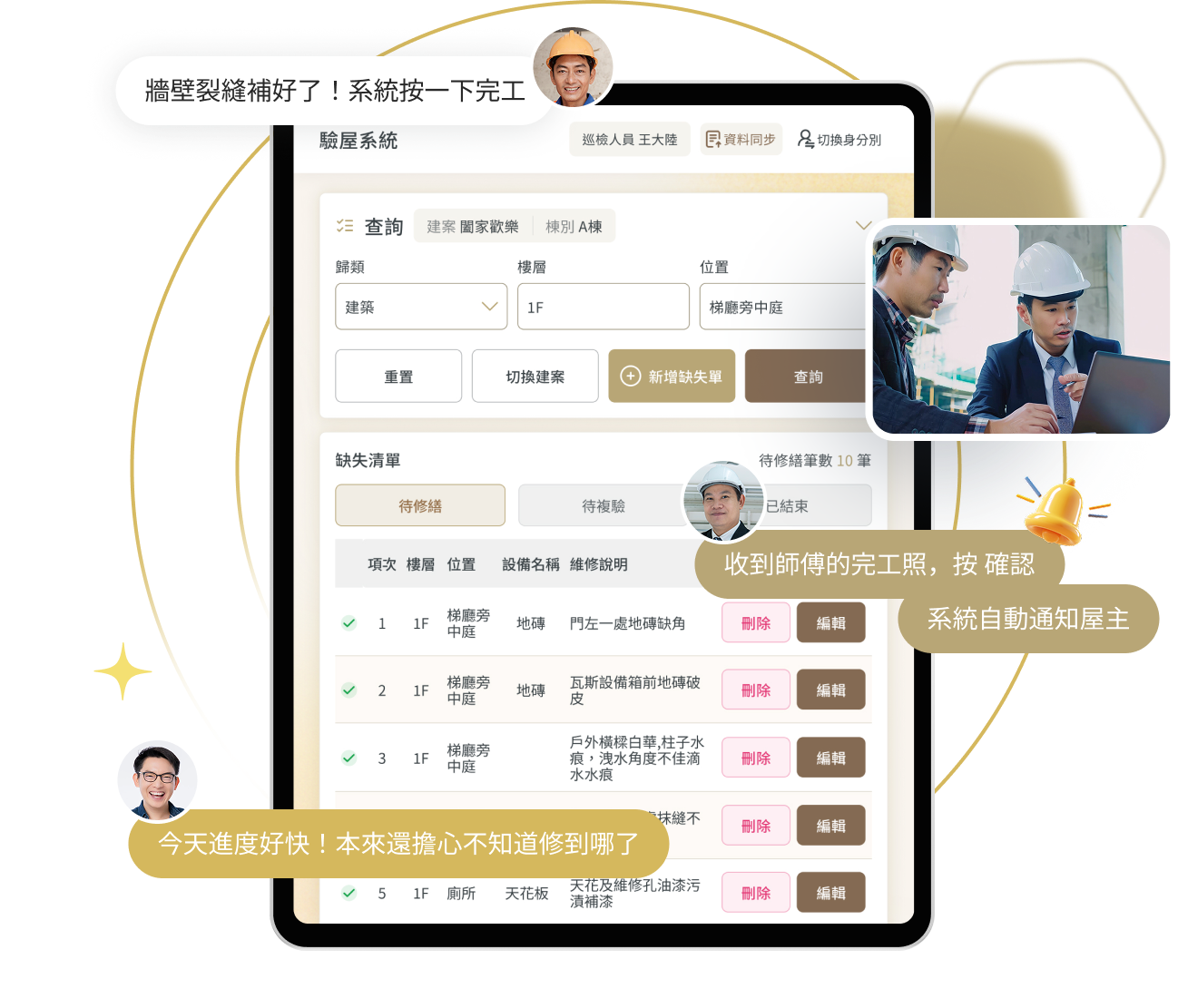 進度透明、修繕即時,將客訴轉化為好評口碑。